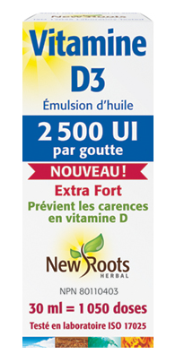 Vitamine D3 2 500 UI Extra Fort (liquide) - New Roots Herbal